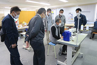 「東京都ミシン商工業協同組合(立川健夫理事長)、東京都ミシン商工業協同組合技能士会(鎌田健一郎代行)は昨年12月1日、共催でJUKIの新製品『ダイレクトドライブ1本針本縫上下送り倍釜自動糸切りミシン DU―1481―7』の講習会を組合会議室で5回に分けて行った。(※続きは本紙)